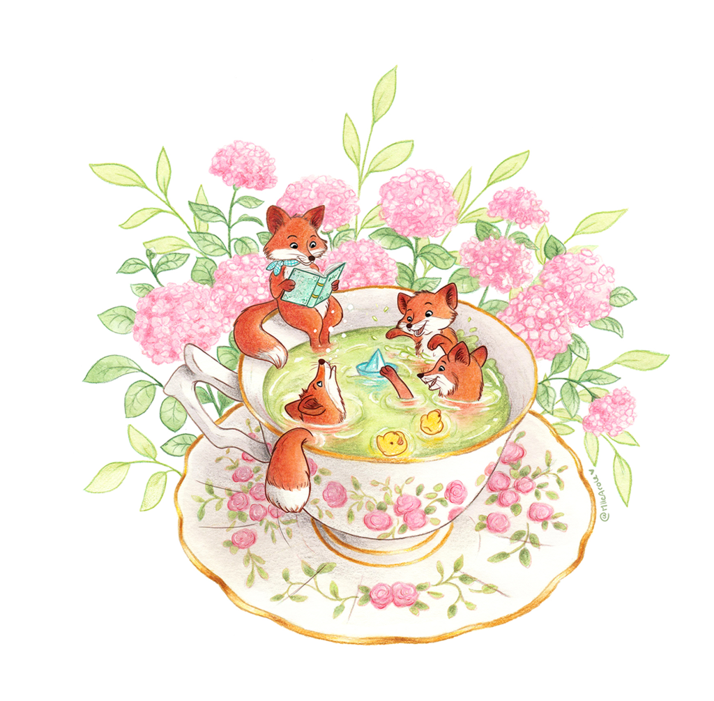 Je travaille essentiellement en traditionnel (gouache, encres et crayons de couleurs) mais je peux m’adapter et créer des illustrations en numérique.